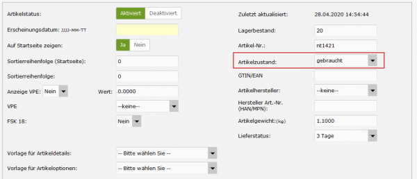 Den Artikelzustände neu, gebraucht, erneuert beim Produkt und in der Produktliste anzeigen lassen.