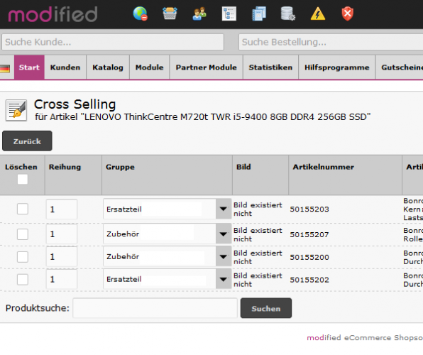 Die CrossSelling-Gruppen-Namen als Kennzeichnung nutzen und einzeln als Gruppe darstellen z.B. Zubehör, Ersatzteile oder Module.
