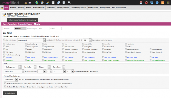Umfangreiches individuelles Import-Export-Modul, um Artikel, Artikel-Attribute und Kategorien in Ihrem Shop zu aktualisieren, zu importieren und zu exportieren.