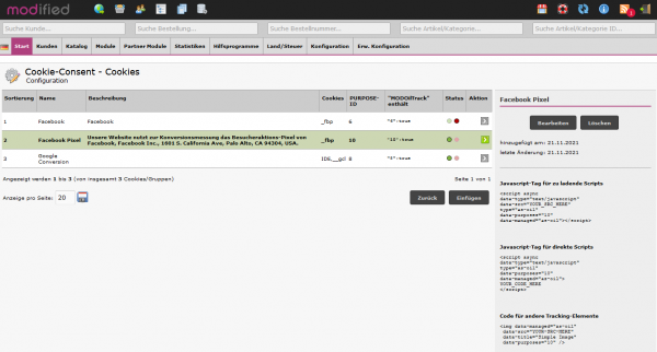 Am Schluss Facebook Tracking Pixel im Cookie Consent Manager datenschutzkonform aktivieren.