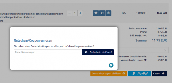 So können Ihre Kunden das Gutscheineingabefeld nicht übersehen. Sie entscheiden auf welchen Seiten die Coupon-Gutscheinbox angezeigt werden soll. Die neue Box ist individuell anpassbar an Ihr verwendetes Design bzw. Template. Es ist so auch möglich die Coupon-Gutscheinbox per Buttonklick in einer Lightbox anzuzeigen.