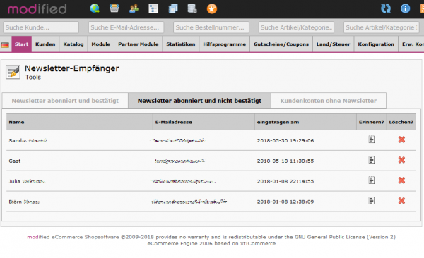 Einfaches bearbeiten und löschen der Newsletterkunden im Admin-Bereich.