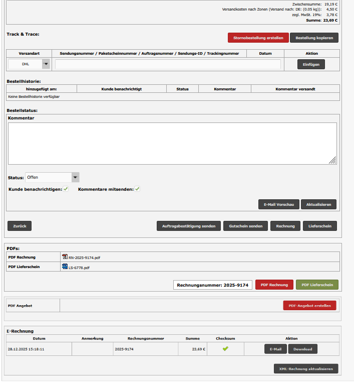 PDF-Rechnung (ZUGFeRD-Rechnung), PDF-Storno-Rechnung, PDF-Lieferschein und PDF-Angebot im Shop erstellen und versenden