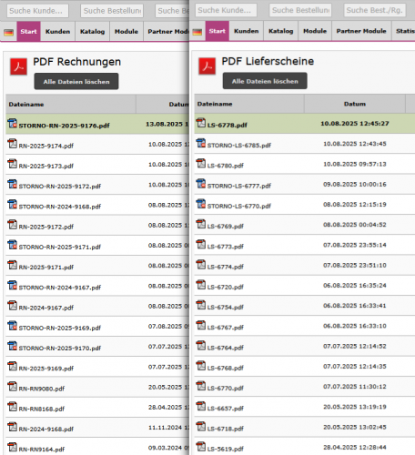 Rechnungen und Lieferscheine werden in separate Ordner abgespeichert.