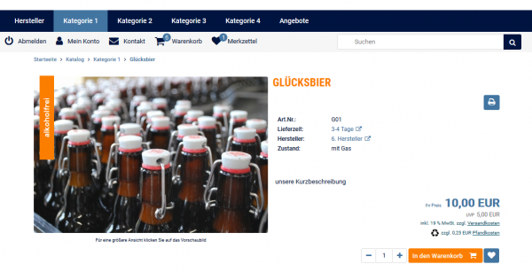 Besonders empfehlenswerte, limitierte Artikel oder das aktuelle Monatsangebot explizit kennzeichnen mit individuellen Bezeichnungen und in der Produktliste und in der Produktdetailansicht anzeigen.
