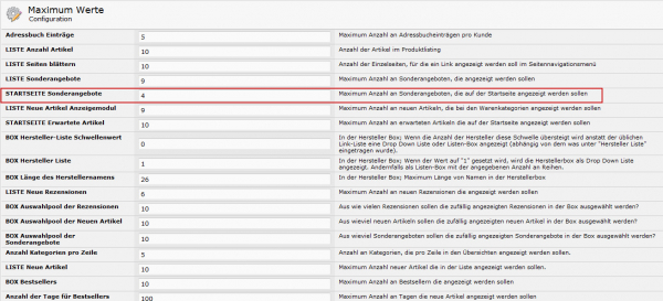 Im Backend tragen Sie ein, wieviele Sonderangebote per Zufall aus allen Sonderangeboten auf Ihrer Startseite anzeigt werden sollen.