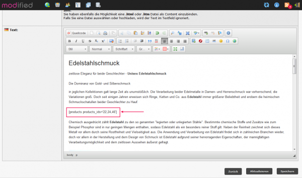 Das Modul Themenwelten bietet Ihnen die Möglichkeit mittels Produkt-ID, Produkt-Artikelnummer, Kategorie-ID oder Keywords, Produkte oder Kategorien aus Ihrem Shop in beliebig gewählten Contentseiten verlinkt einzustellen und anzuzeigen.