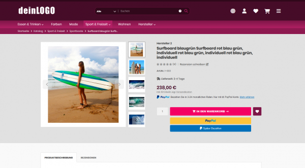 Dynamisches Shop-Template in Pink, übersichtlich, benutzerfreundlich und verkaufsoptimiert.